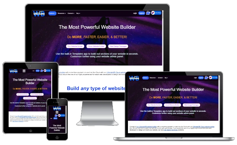 UltimateWB is a powerful and versatile website builder that empowers you to create stunning, responsive websites tailored to any niche. With its user-friendly interface, built-in Responsive app, and extensive customization options, you can easily design mobile-friendly websites that look great on all devices. You not only get cross-device compatibility, but also cross-platform compatibility and cross-browser compatibility. The robust backend database system provides a solid foundation for your website and can also be leveraged to power your mobile app, streamlining development and ensuring data consistency across platforms. On the UltimateWB Showcase page, you can find many websites that are built on UltimateWB and have apps powered with the UltimateWB backend database in Google Play and the App Store.