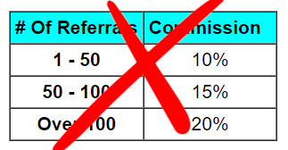 - Commissions are tiered: 10%–20% depending on your total referred sales.