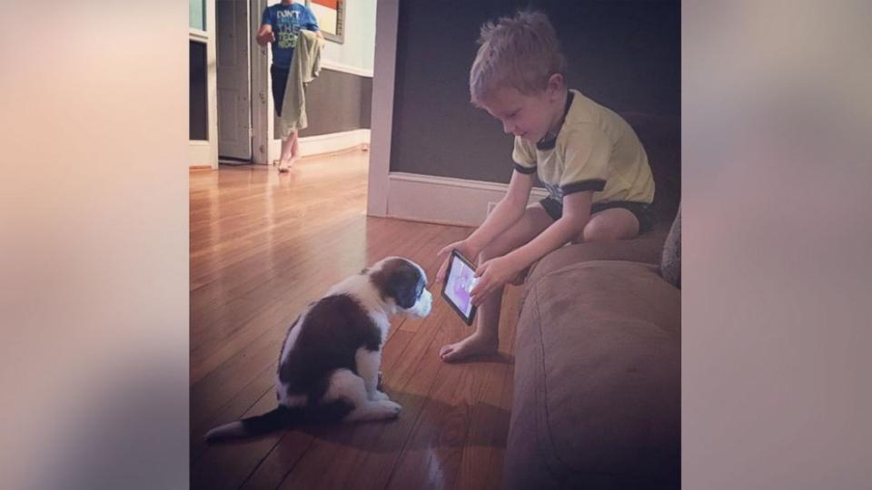 His parents told him it was his responsibility to train his new puppy, and suggested looking up YouTube tutorials. So Lincoln Ball did just that, lined up the YouTube videos on the iPad, and then showed his dog the videos.