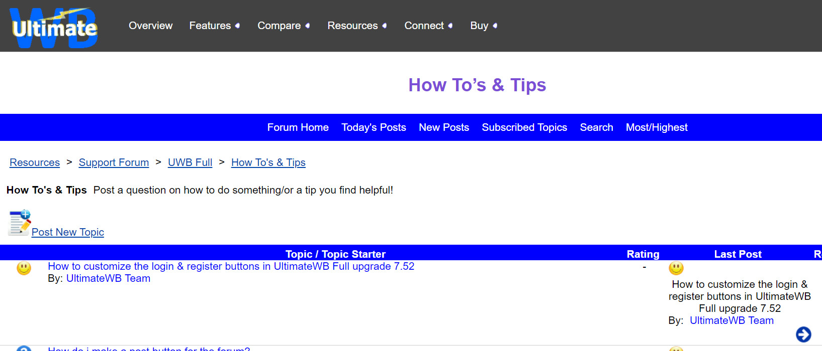 Breadcrumbs in action on the UltimateWB Forum, using the UltimateWB website builder.