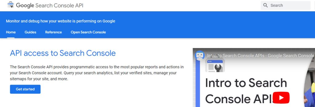 - The Search Console API documentation provides code samples and detailed information to help you get started https://developers.google.com/webmaster-tools.