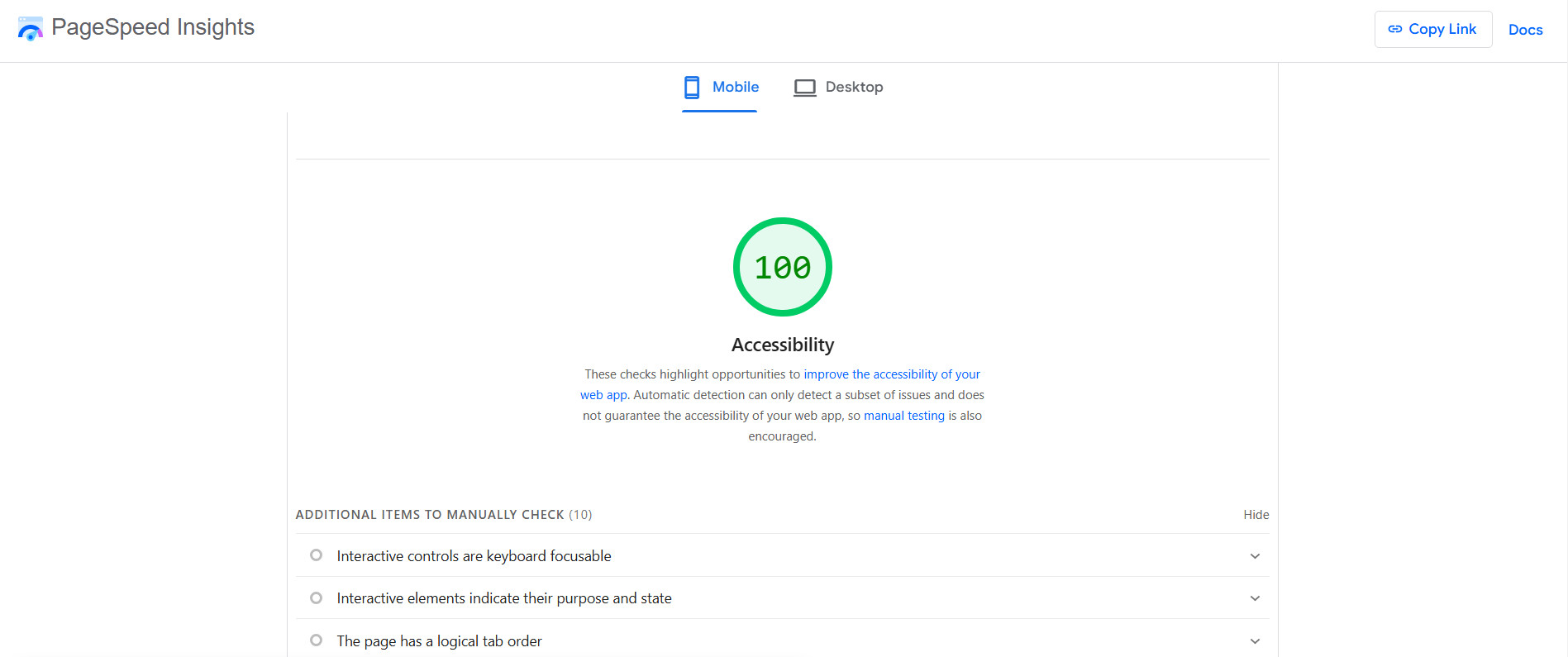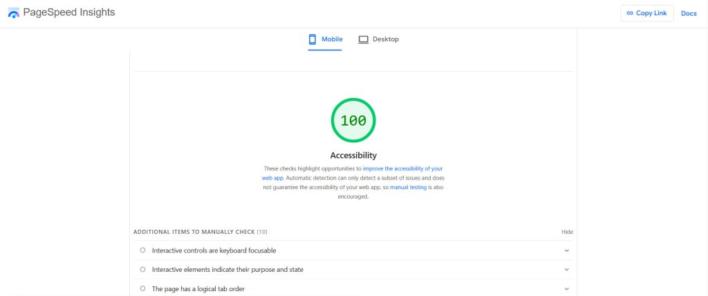 - Run your site through free accessibility checkers like WAVE or Google Lighthouse / PageSpeed Insights.