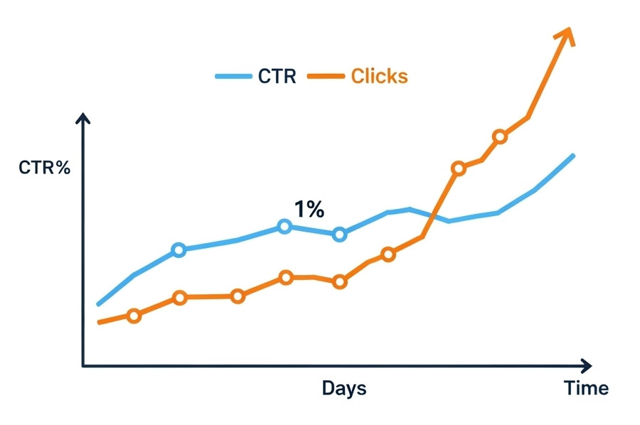 While a CTR under 1% might initially seem troubling, it’s not inherently bad – especially if your click volume is solid and increasing. In many cases, it means your campaign or content is scaling. The real question is whether that growth is relevant, cost-effective, and converting.
