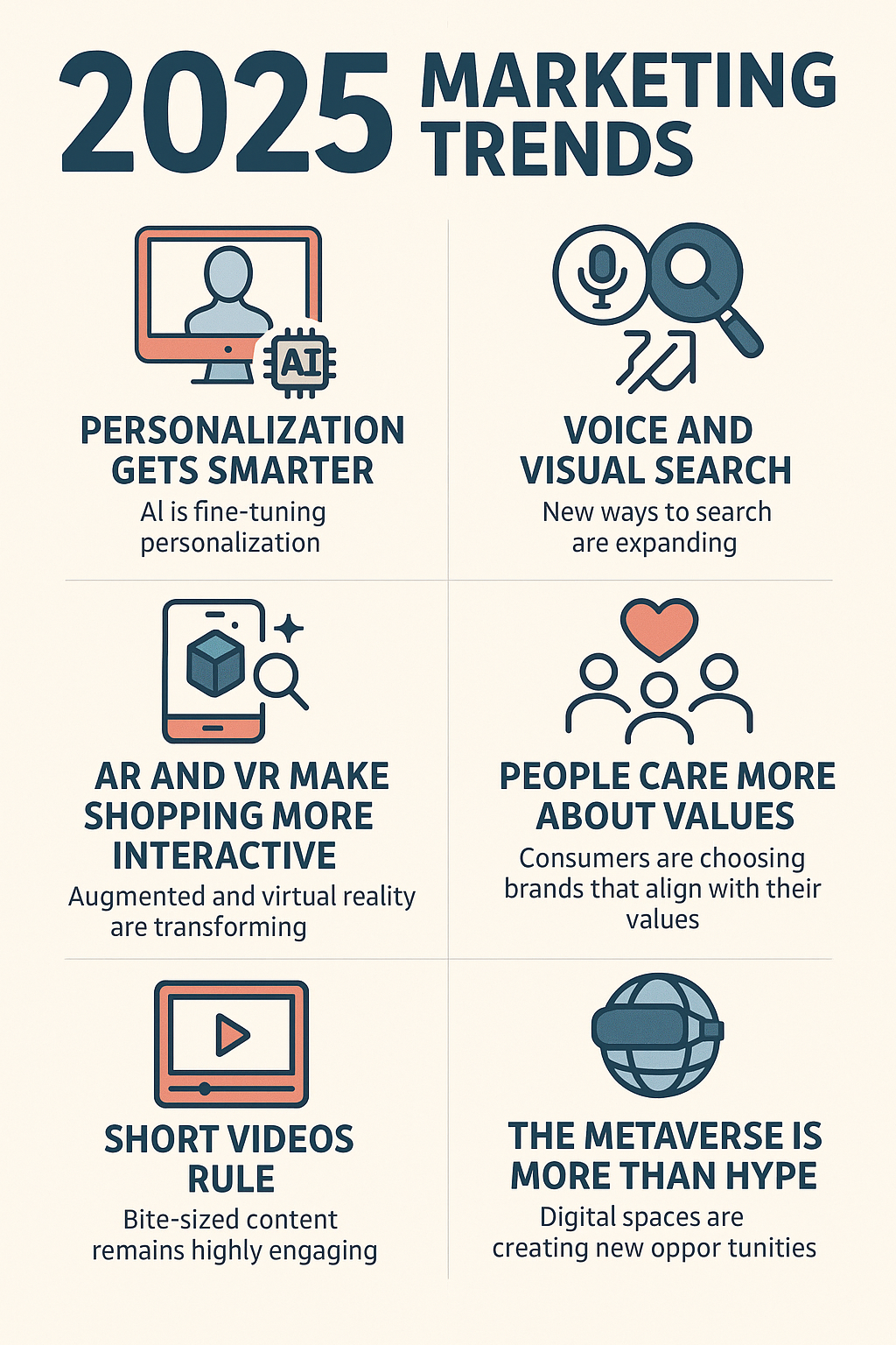 Marketing is changing fast, and if you want to keep up, it helps to know what’s coming next. In 2025, some big shifts are happening – from new tech to how people want to connect with brands. Here’s a quick rundown of the biggest trends that’ll shape marketing this year, and some ideas on how you can use them to your advantage.
