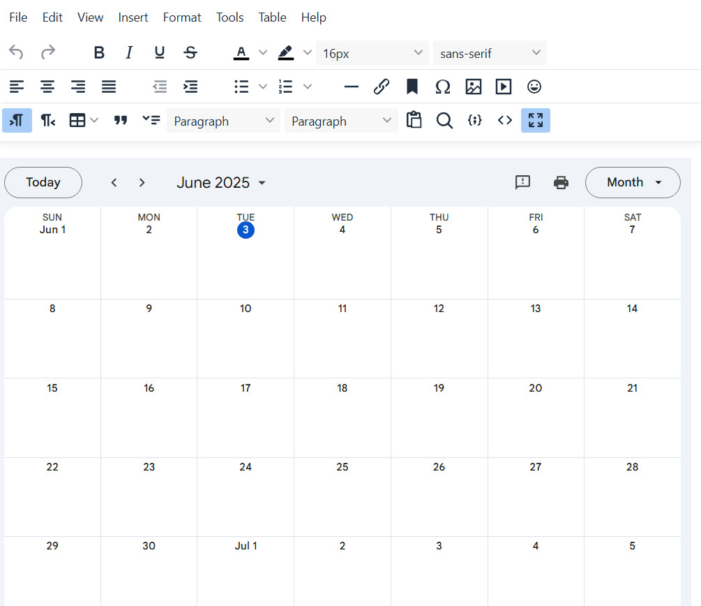 Paste the embed code wherever you want the calendar to appear in your HTML.