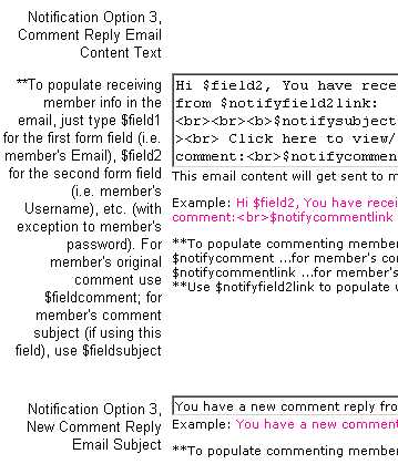 can also set a notification option for members to be emailed when their comment receives a reply (if you have the Replies feature turned On, on the Add/Edit Page as described on "Add Comments & Ratings Section to your Webpage").