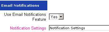 The Notifications set-up section is on the Configure Site > Social Networking > Email Notifications page. To use the Email Notifications feature, mark the "Use Email Notifications Feature" to Yes.