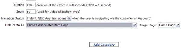 To link category photos, i.e, photos in a slideshow or photogallery, to the Item picture's Item page: On the Photos > Add Category/Edit Category Pages for the "Link Photo To" option, choose "Photo's Assiciated Item Page" from the menu. Be sure to also tag the photos in the category to their associated Item page as described above, if you haven't already.