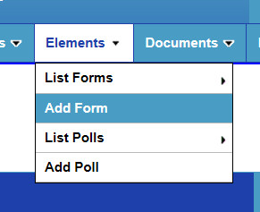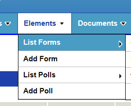 Next, you will want to create the form fields for the form/survey. Go to the Admin Panel > Elements > List Forms page.