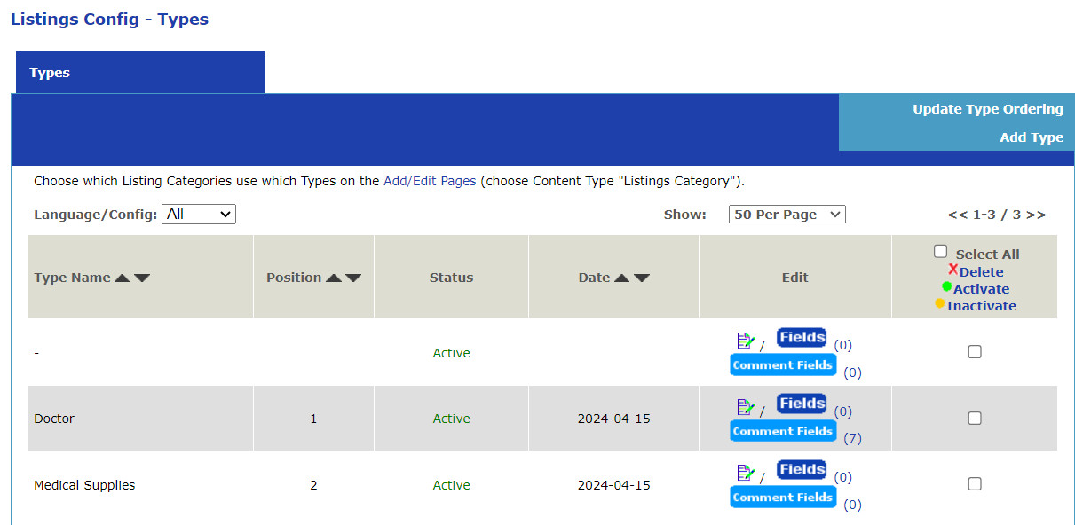 This will take you to the list of types for the Listings Directory: