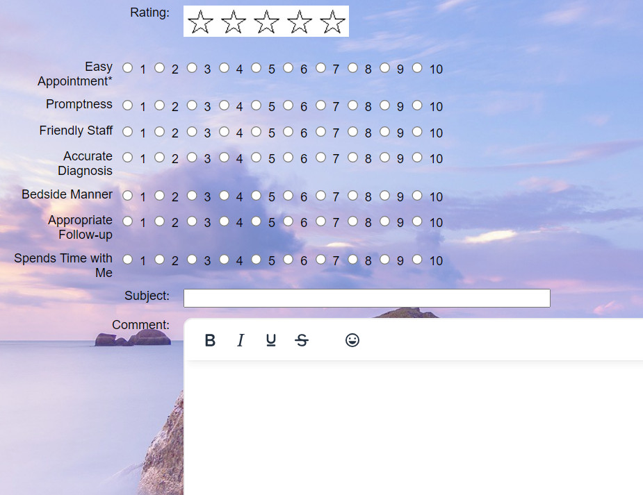 The result can be like the demo, where there are detailed ratings. and different questions for the ratings of doctors, vs Medical Supplies, for example.