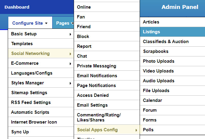 This will take you to the Listings Config page: