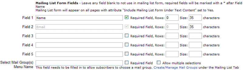 Here you should also input in a label for the Mail Groups menu if you want to allow subscribers to choose a mail group.