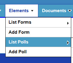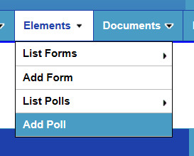 Next, you will want to create the poll fields for the poll. Go to the Admin Panel > Elements > List Polls page.
