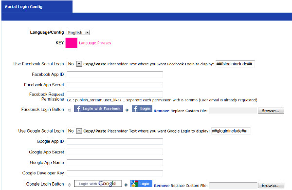 Inserting Facebook Login / Google Login buttons on your website: Just copy/paste the appropriate Placeholder Text provided on the Social Login Admin Panel page, where you want the button to appear on your website. For example, if you want it on your page header, just copy/paste the Placeholder Text on your page header page, where you want it to display.